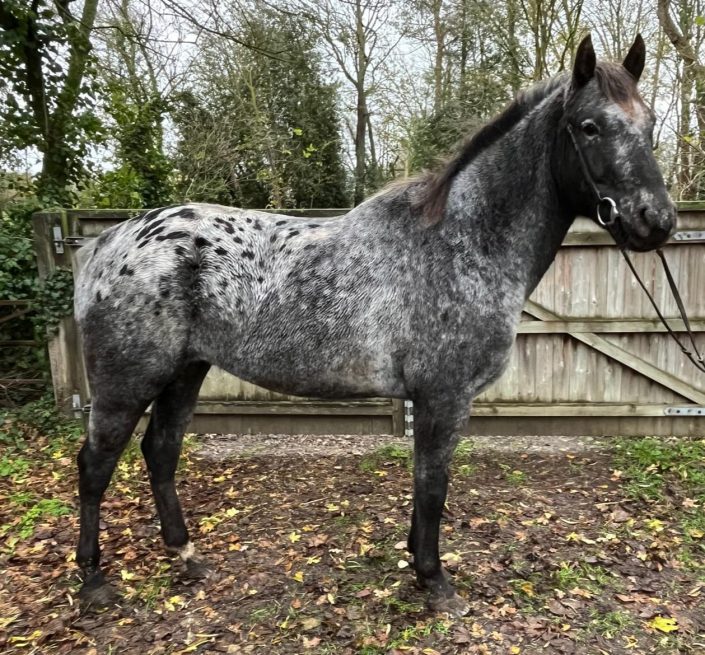 Homozygous black (EE/aa) blanket filly, heterozygous for PATN1/patn1and the leopard gene LP/lp. Expected height 15.3+hh
