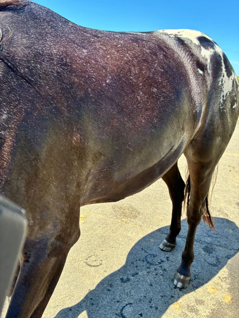 Ghost carries one copy of Squamous Cell Carcinoma (SCC) although a recessive gene we will test Really, it won’t make a difference to his breeding because he will be gelded but we like to know the facts. He has been CONFIRMED NEGATIVE.