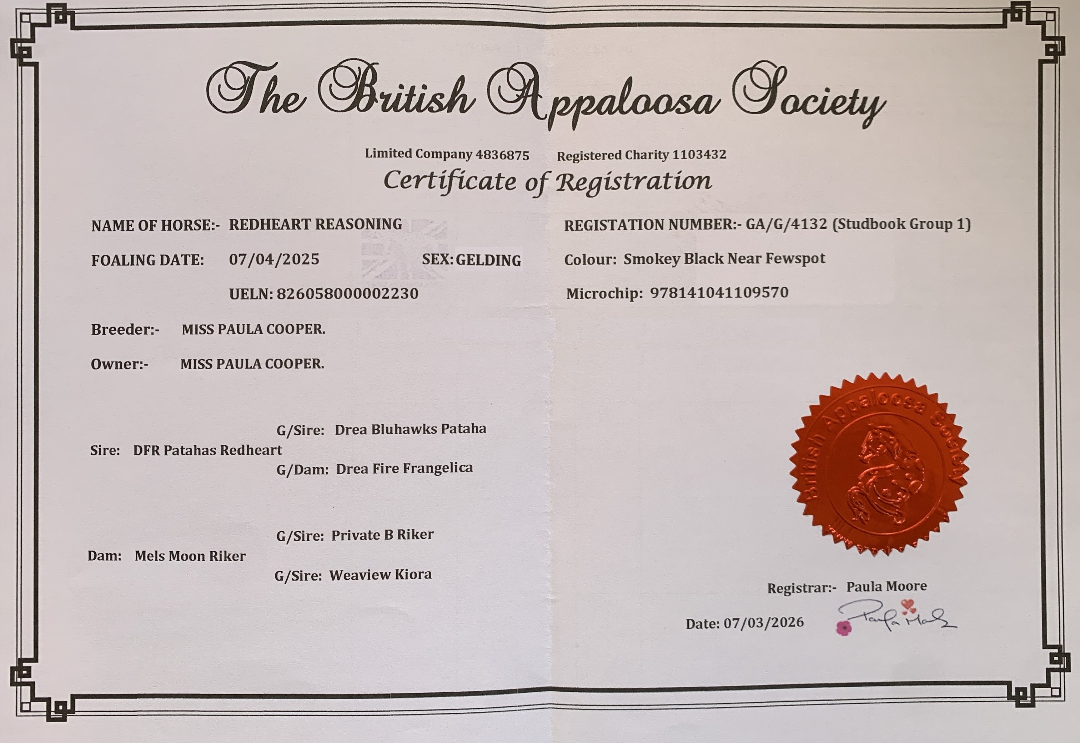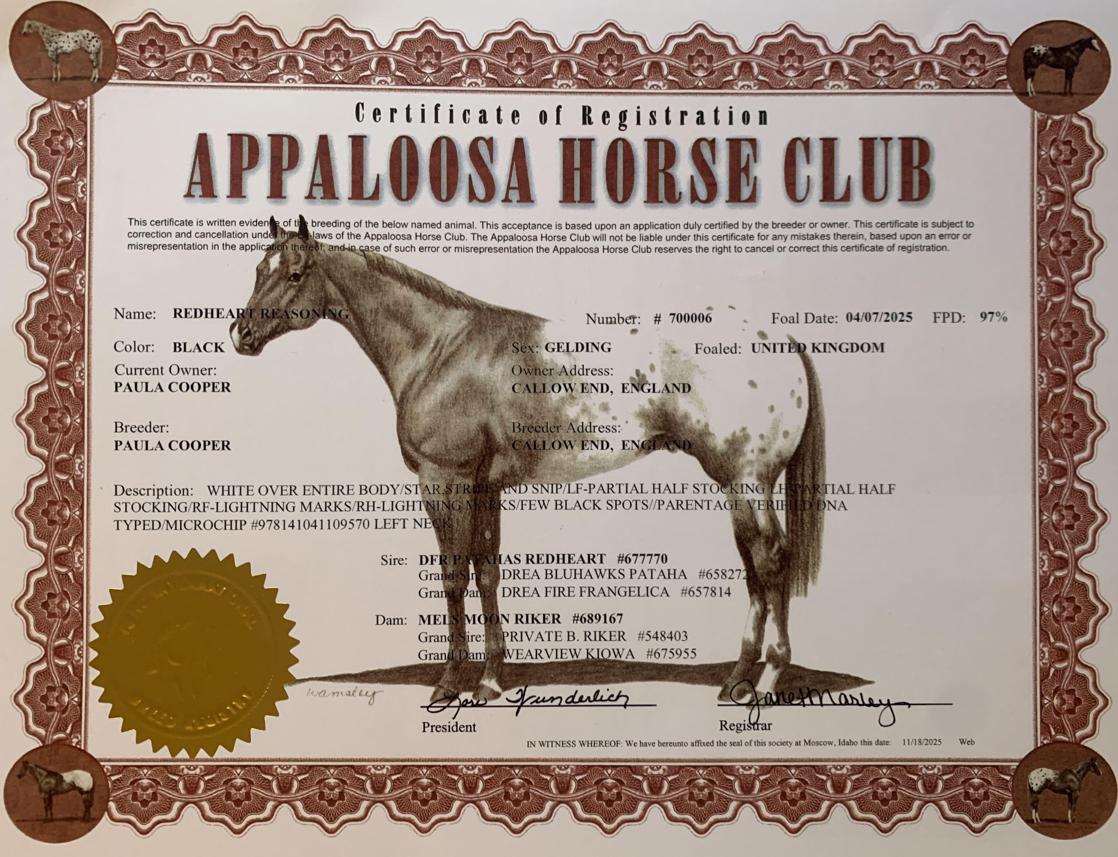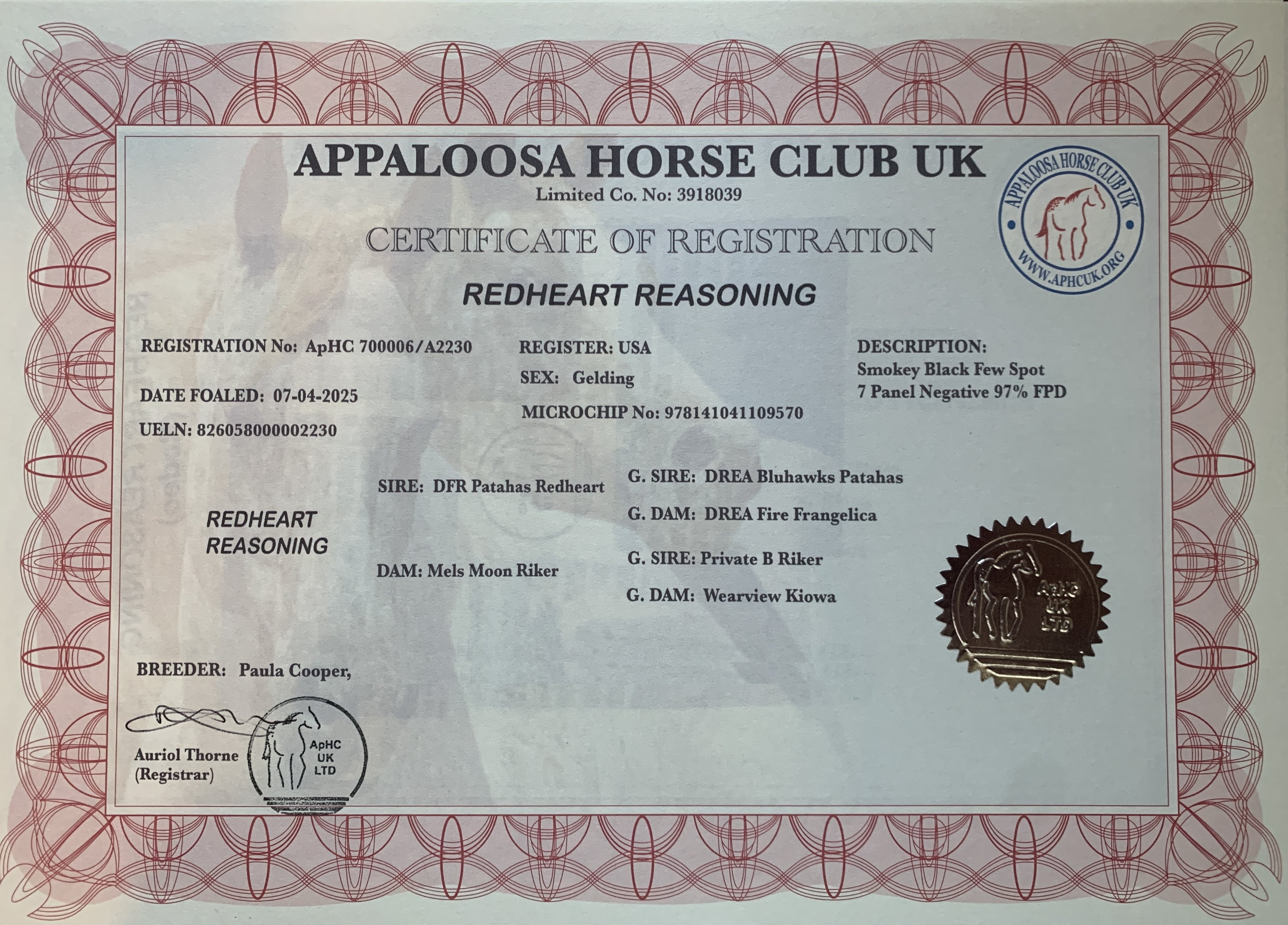 Registered with the Appaloosa Horse Club, the Appaloosa Horse UK & the British Appaloosa Society.