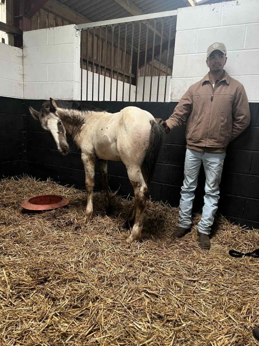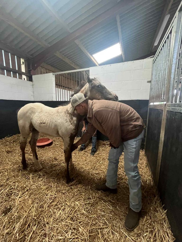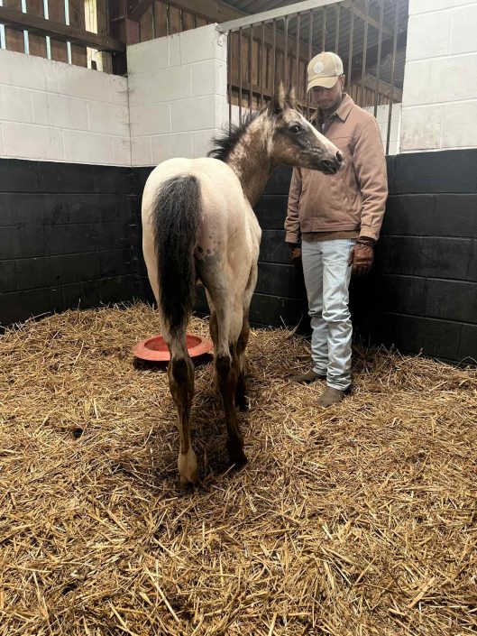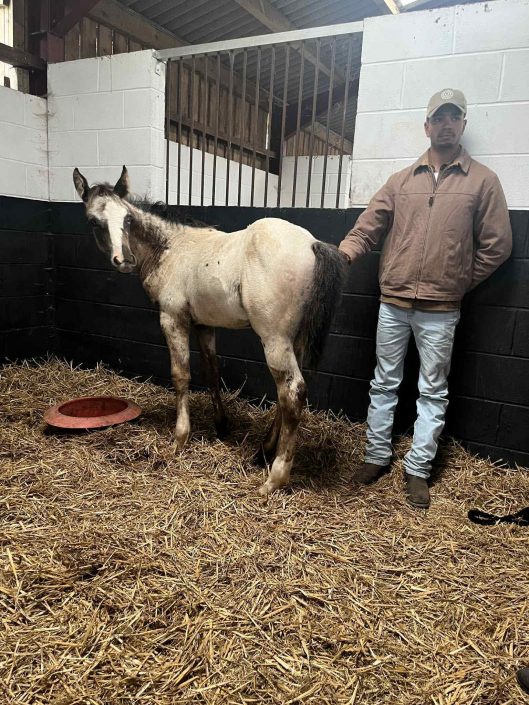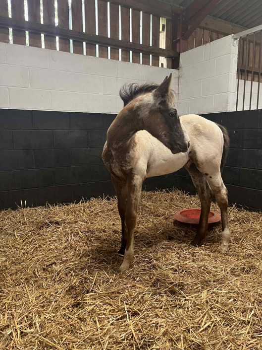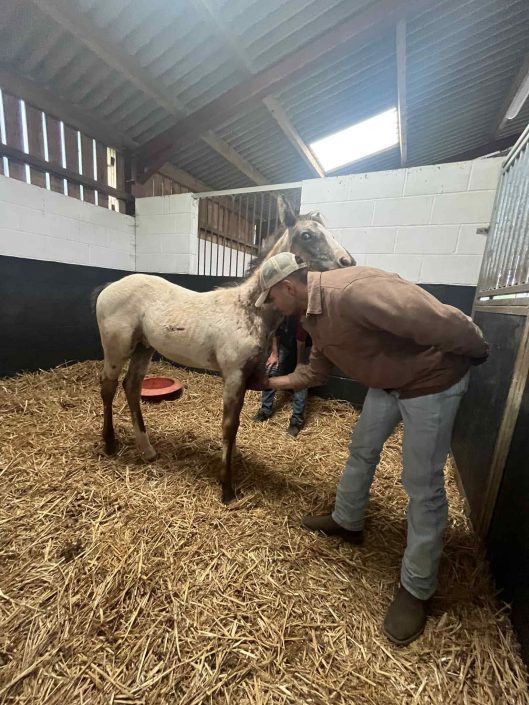 Rodeo is out of our purchased mare Indi, inseminated with fresh semen from our Stallion DFR Patahas Redheart. This is our first mating with this combination and we are delighted to see a healthy foal arrive, he’s is a correct big foal and we are absolutely delighted with him (a filly was to be retained by the Stud).