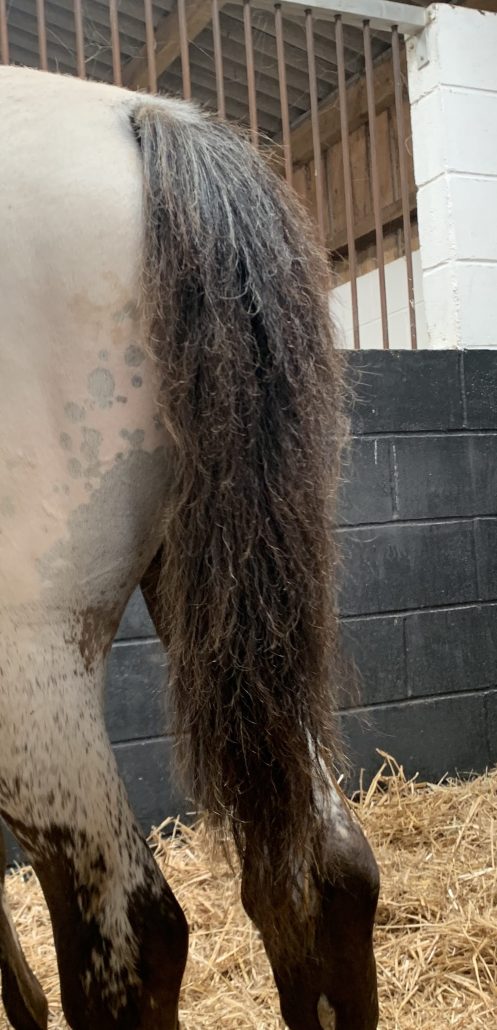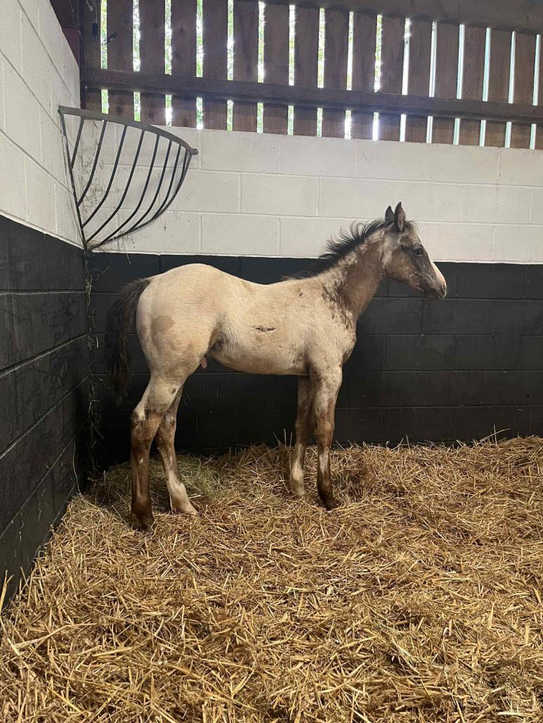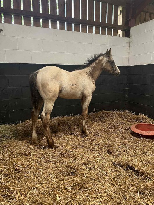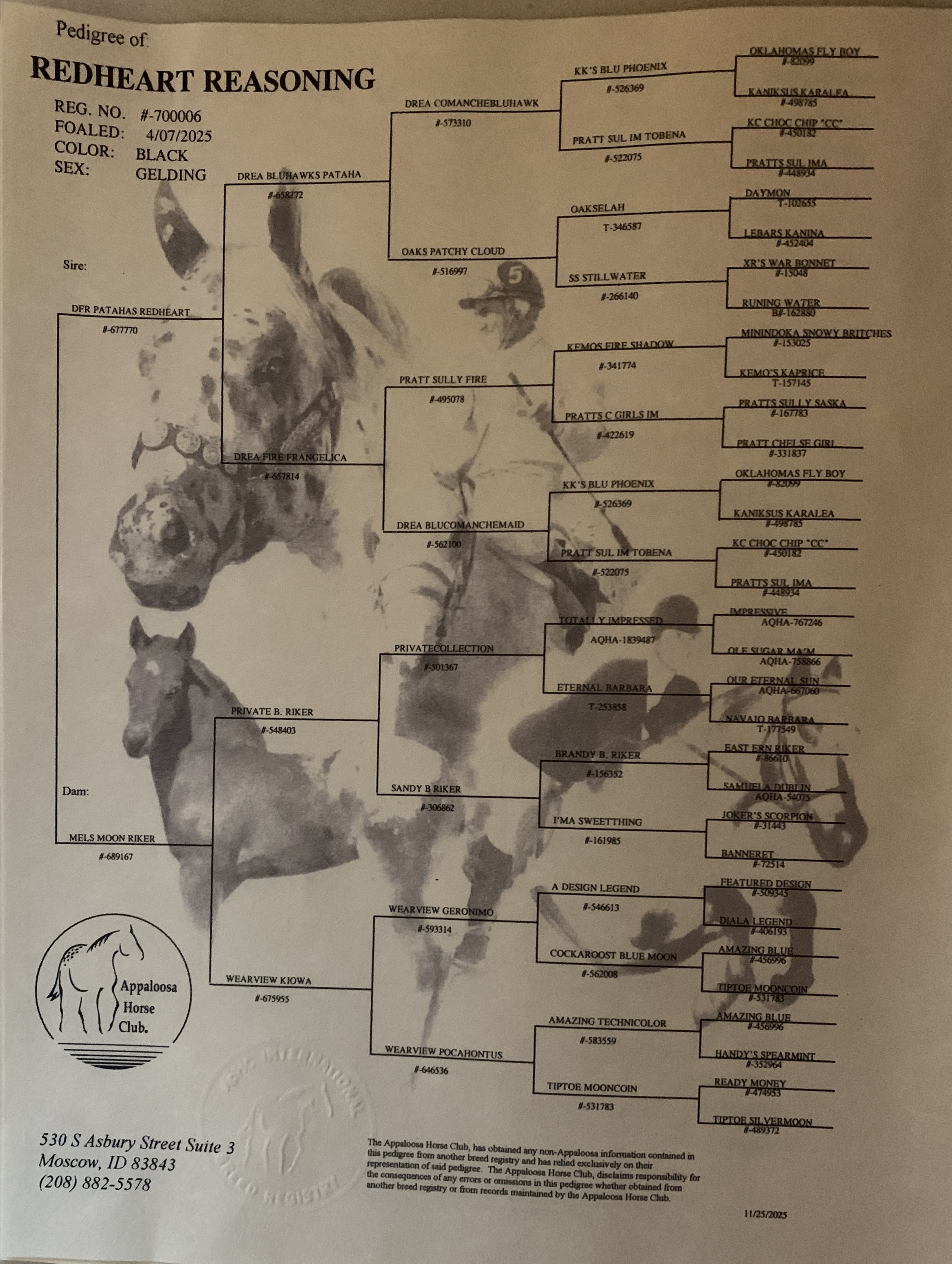 Certified negative by parentage for PSSM1 – Polysaccharide Storage Myopathy, HERDA – Hereditary Equine Regional Dermal Asthenia, GBED – Glycogen Branching Enzyme Deficiency, HYPP – Equine Hyperkalemic Periodic Paralysis Disease, MH – Malignant Hyperthermia, Grey gene, and Squamous Cell Carcinoma (SCC).